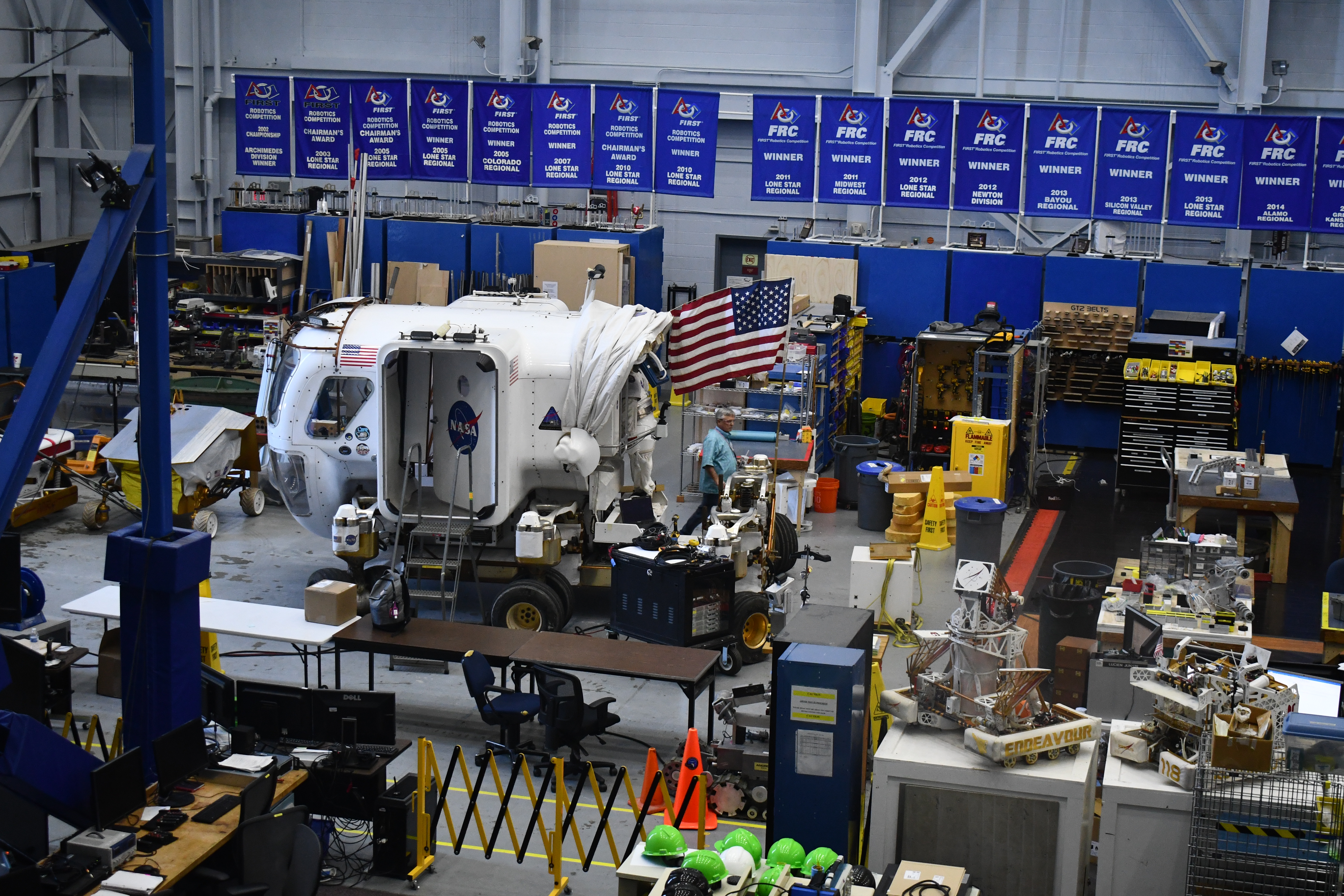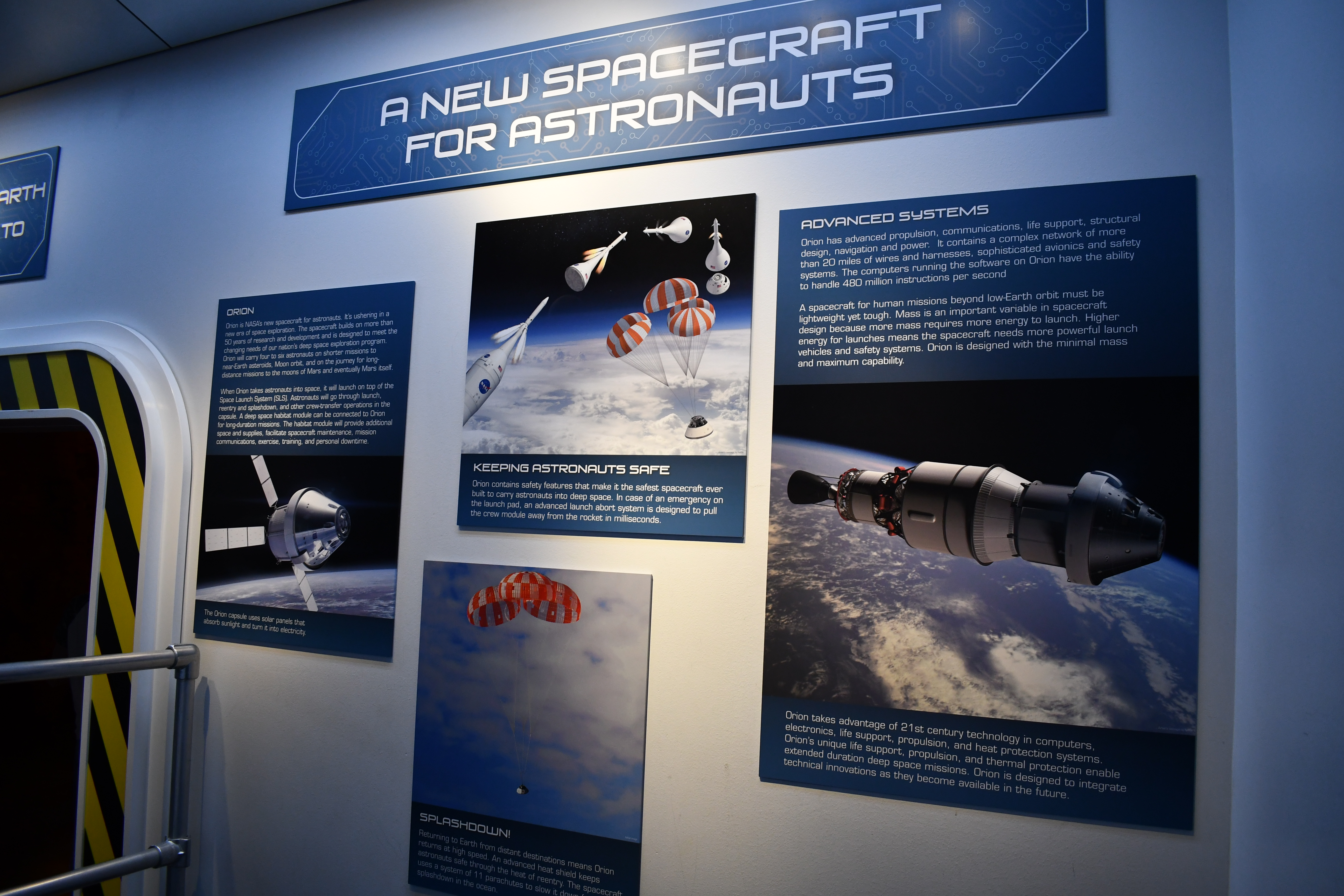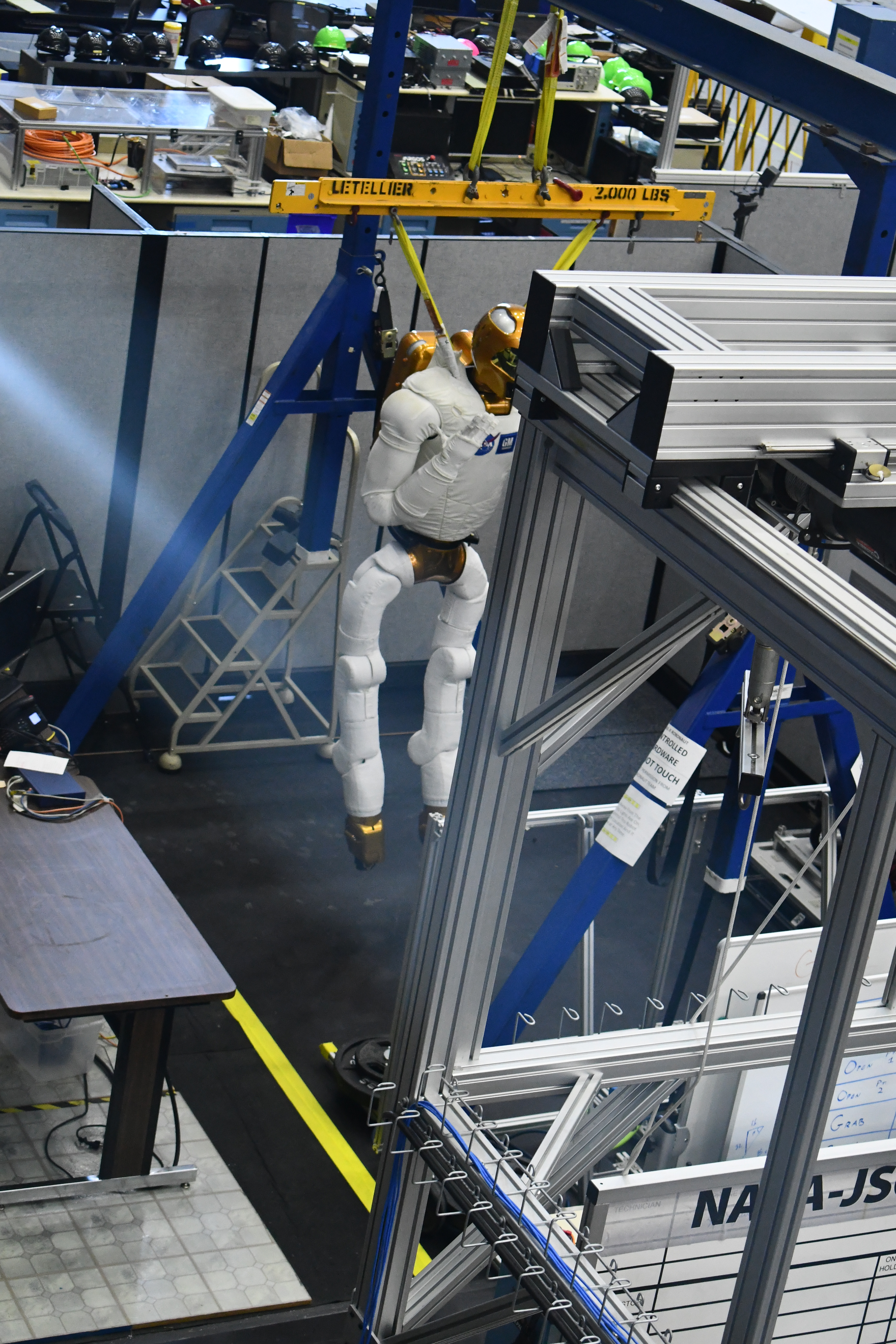 Walking an elevated path through a large hangar, we got to see NASA’s astronaut training facility in Building 9. We saw Valkyrie, a humanoid robot and apparently the first to be able to walk up stairs independently, being put through some ‘exercises’. We also saw the future home for some of the training for Orion.